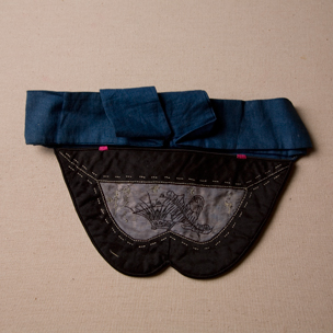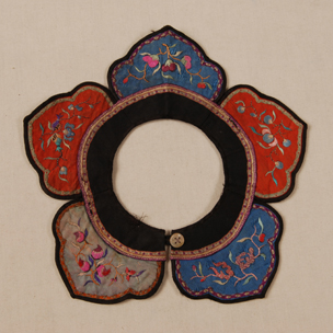 紅藍(lán)色綢繡花卉口圍