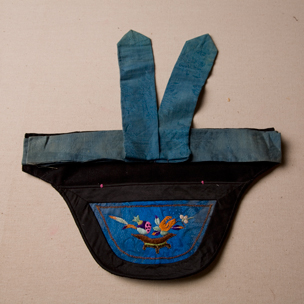 藍(lán)綢圈金繡石榴佛手腰包