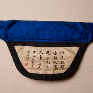 藍(lán)白綢緞繡詩(shī)文腰包