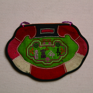 綠地戳紗繡長(zhǎng)命富貴錢袋