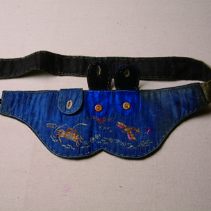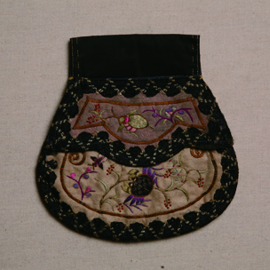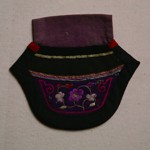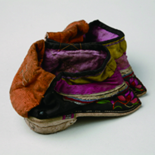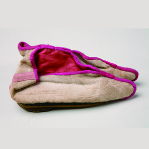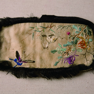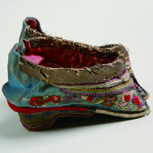 石青緞金絲紅綠綢邊繡花卉小腳鞋