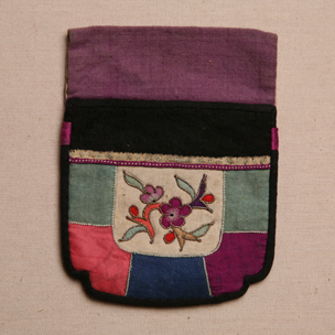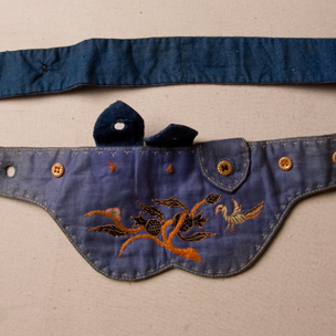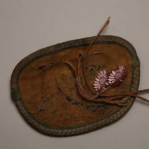 藍緞圈金鋪絨繡石榴飛雁腰包