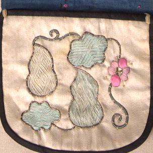 藍(lán)白緞鋪絨繡葫蘆花卉褡褳