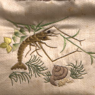 白緞彩繡魚蝦水草煙絲袋
