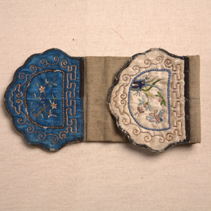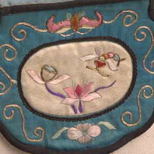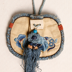 藍(lán)白色緞彩繡花蝶褡褳