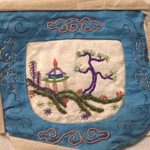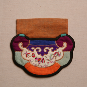 白緞彩繡地景褡褳單片