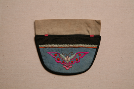 藍(lán)絹彩繡蝴蝶錢袋