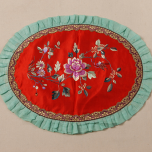 大紅緞彩繡牡丹鏡套