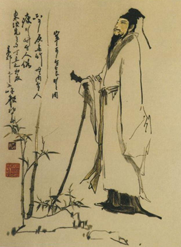 Also known as Su Shi and a man of Sichuan Province, this Song dynasty giant excels in almost all areas of literary creativity including poetry, verses, calligraphy, painting and aesthetic criticism. This embroidery depicts Su Dongpo in a cane by a rock and bamboo, using the linear outline technique in Chinese brush painting. (XZ)