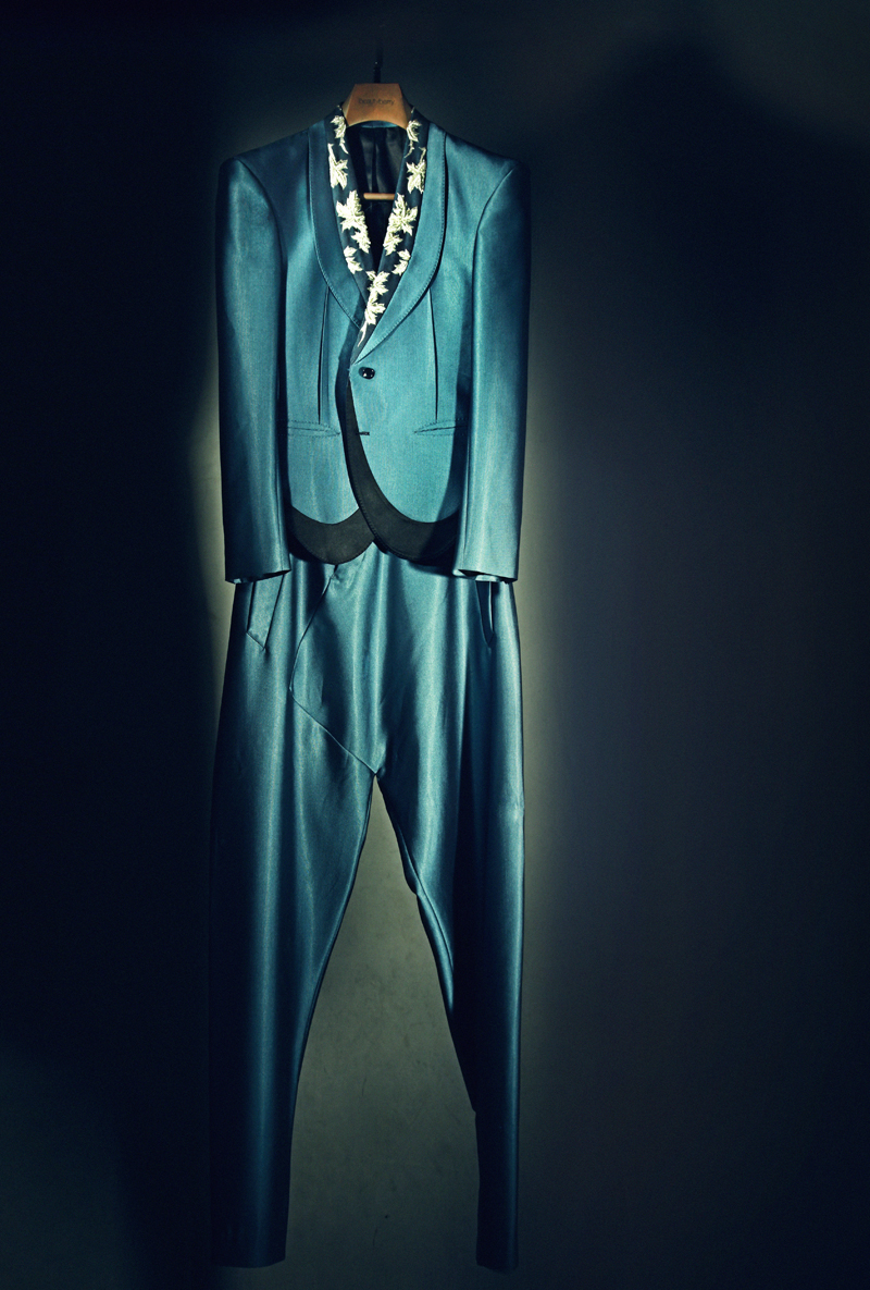 設(shè)計理念:此件作品中將中國傳統(tǒng)刺繡與現(xiàn)代設(shè)計相結(jié)合,裁精美,造型簡約而富有創(chuàng)意,色彩素雅卻散發(fā)出華麗氣息,創(chuàng)造了一種新的男式著裝典范。