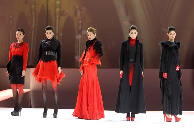 這次系列的靈感來源于對生物提進(jìn)行研究,并結(jié)合自己的情感延伸出來的。這系列服裝注重細(xì)節(jié),并以高水平剪裁融入其中。這系列運(yùn)用了簡潔而大氣的線條和廓形,以及運(yùn)用新的材質(zhì)面料。在顏色上運(yùn)用了2013秋冬流行色紅色。在對面料進(jìn)行重組,將羊毛氈工藝手法運(yùn)用到了不同面料。