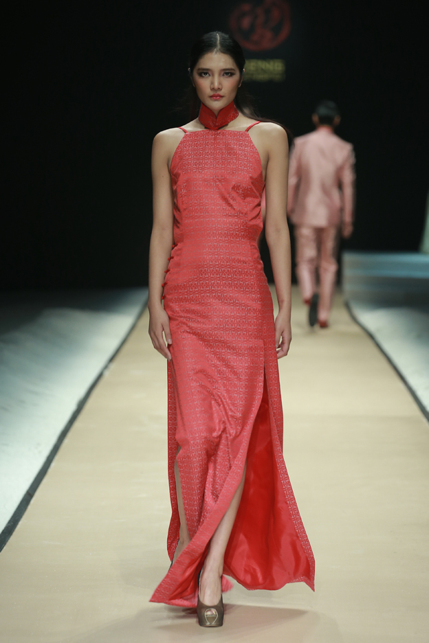 設(shè)計(jì)理念:該系列作品以經(jīng)典中國元素十二生肖之“馬”為設(shè)計(jì)元素,發(fā)展出不同形態(tài)的圖騰紋樣,貫穿于本季系列服裝面料設(shè)計(jì)中,與即將到來的2014中國馬年相呼應(yīng)。簡潔而有張力的廓形,弱化了對(duì)裝飾線條的依賴,輔以精致的宋錦紋樣提花,讓曾鳳飛在生活所悟中提煉出的設(shè)計(jì)靈感,通過他的設(shè)計(jì)作品又回歸到生活的本源,展現(xiàn)出中國男人細(xì)膩含蓄的一面。