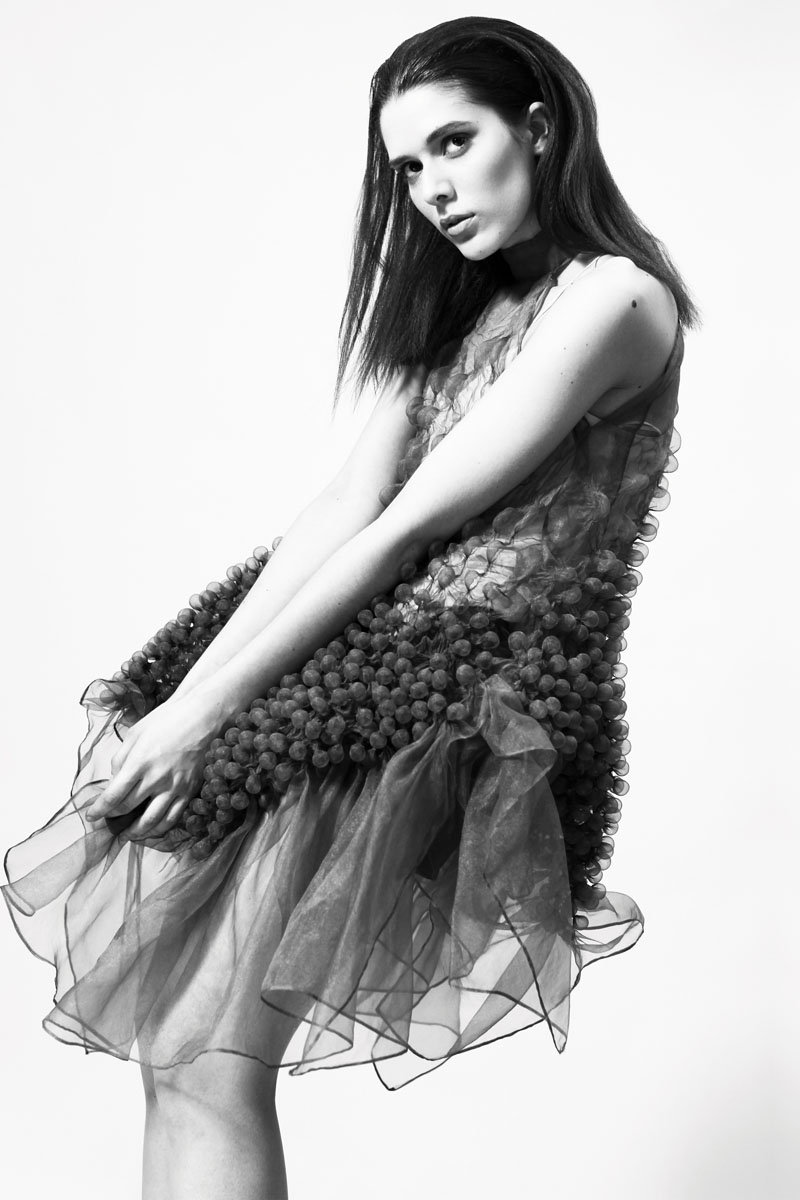 設(shè)計(jì)理念:目的是為了重新審視衣服的本質(zhì)和人類(lèi)日漸忽略的情感。觸摸和感覺(jué)是另一種溝通方法,是超越言語(yǔ)聲音的。作品通過(guò)豐富的視覺(jué)觸感和手部觸感希望重新喚起人們的五感和思考存在的價(jià)值。