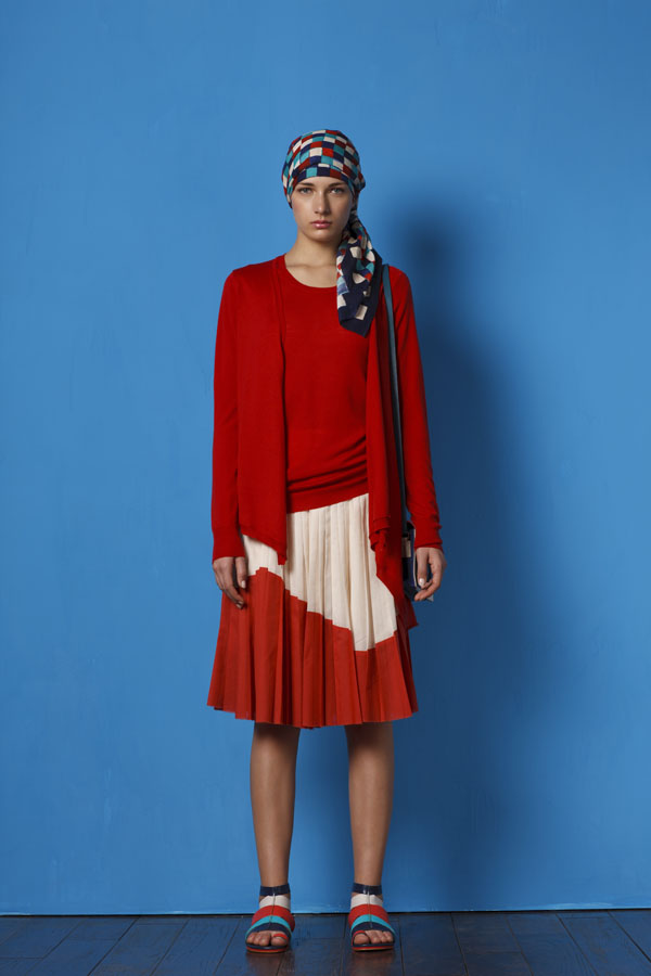 設(shè)計(jì)特點(diǎn):裙身采用棉滌壓皺的設(shè)計(jì),定型效果極佳,手感柔軟,且便于服裝的后期打理。同時(shí)運(yùn)用弧形的拼色設(shè)計(jì),顏色的碰撞增加了服裝的亮點(diǎn)。