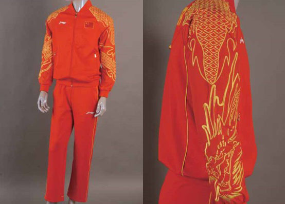 羽毛球隊(duì)比賽服名為“赤鱗之靈性”,象征著隊(duì)員們矯健敏捷的動(dòng)作,靈活迅速的移位,如龍一般充滿靈性,出神入化。乒乓球隊(duì)的比賽服名為“赤鱗之通天”,取其一飛沖天之意。寓意“國球”隊(duì)將在倫敦取得輝煌戰(zhàn)績,展示國人一飛沖天的霸氣。