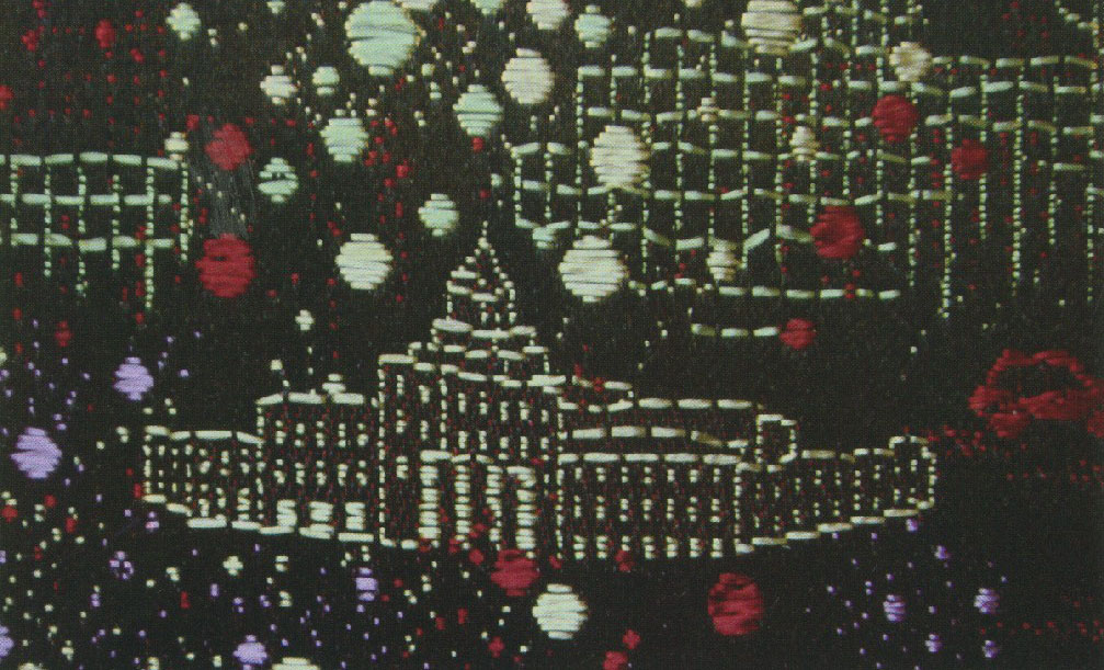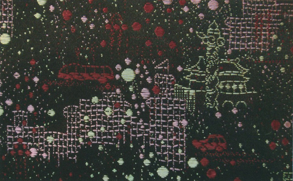 為向建國十周年獻禮,北京興建了人民大會堂、中國歷史革命博物館、軍事博物館、北京火車站等十大建筑,江浙滬三地的絲綢公司不僅為此配套設計生產(chǎn)了一系列室內(nèi)裝飾用綢,而且建筑本身也成為一個熱門的紋樣題材。