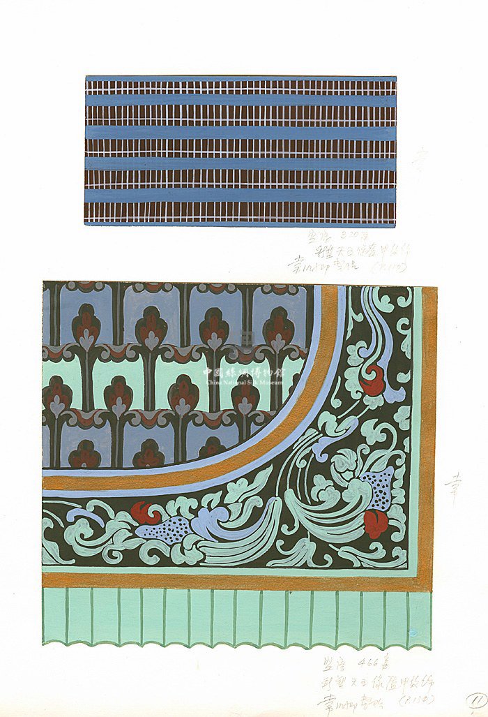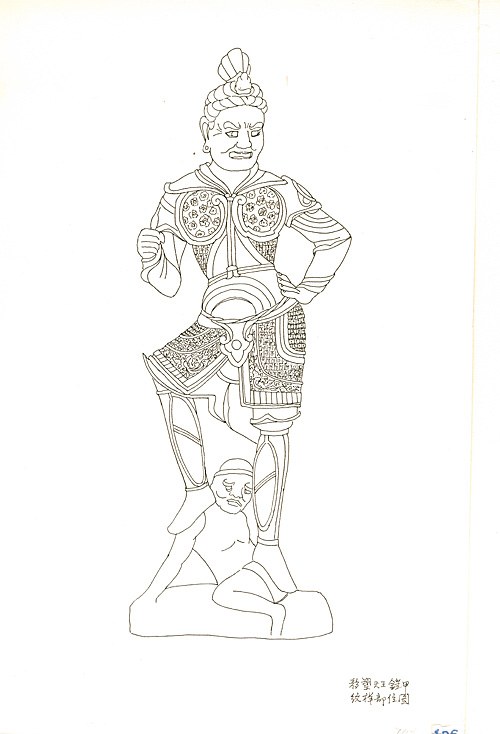 盛唐320窟(上)彩塑天王盔甲紋飾(常沙娜整理)盛唐466窟(下)彩塑天王盔甲