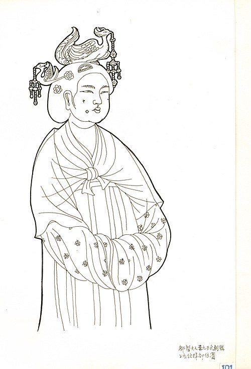盛唐130窟(甬道)供養(yǎng)人都督夫人太原王氏侍從上衣刺繡紋樣(黃能馥整理)