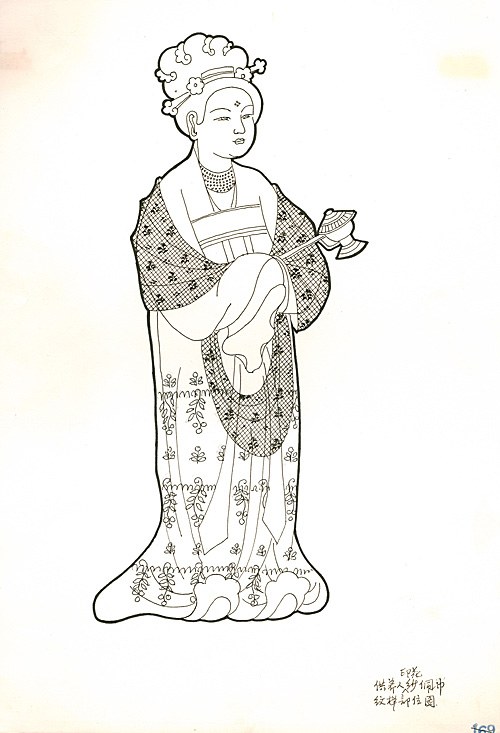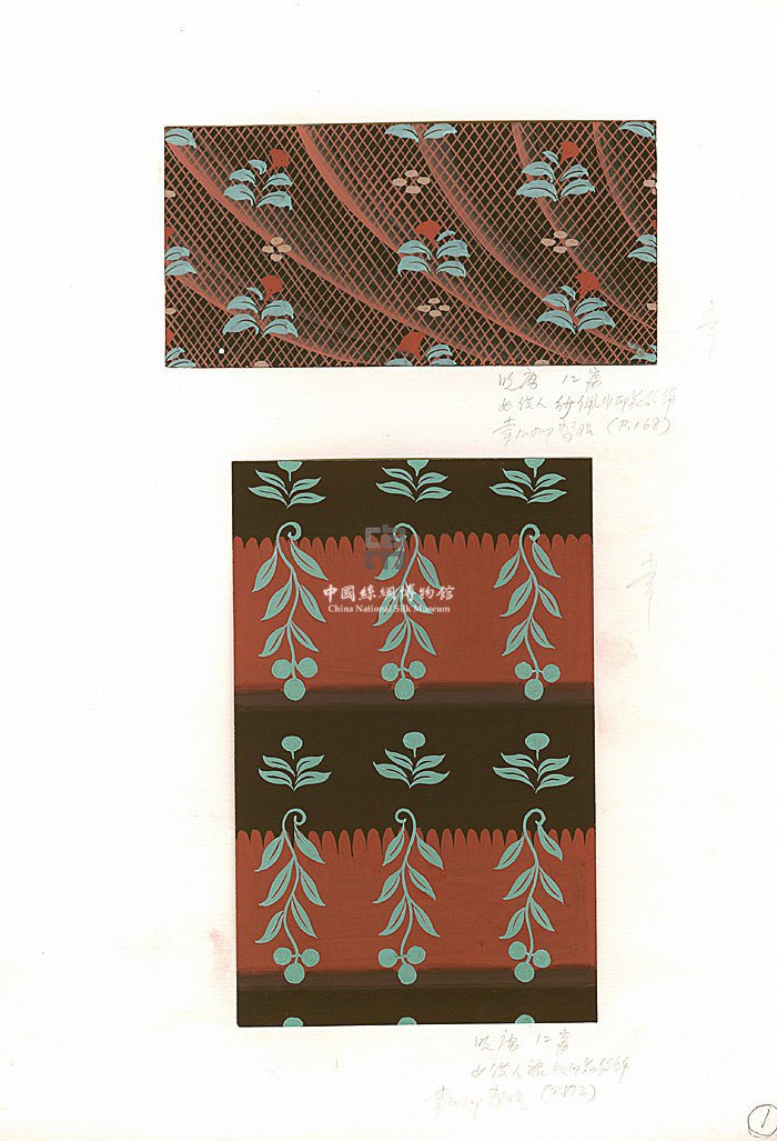晚唐12窟(上)女供養(yǎng)人紗佩巾印花紋飾(常沙娜整理)晚唐12窟(下)女供養(yǎng)人裙衣印花紋樣(常沙娜整理)