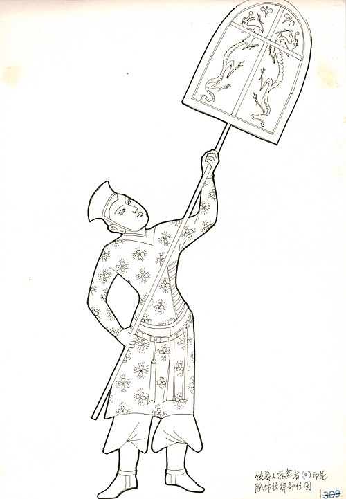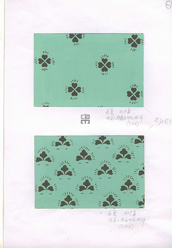 西夏409窟供養(yǎng)人持扇者印花服飾紋樣部位圖(左)供養(yǎng)人持扇者印花服飾紋樣(黃能馥整理) (右上)供養(yǎng)人持扇者印花服飾紋樣(黃能馥整理) (右下)
