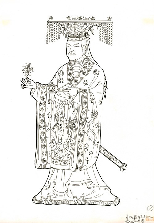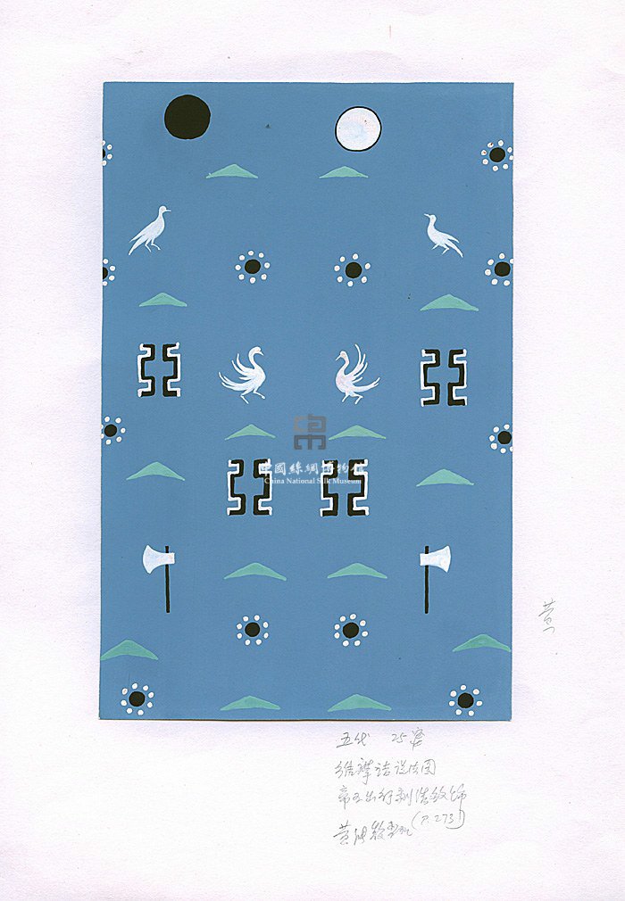五代25窟維摩詰說法圖帝王出行刺繡紋樣(黃能馥整理)(左)維摩詰說法圖帝王出行刺繡紋樣部位圖(右)