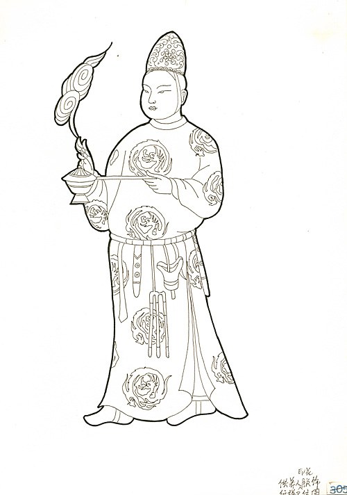 西夏409窟供養(yǎng)人印花服飾紋樣部位圖(左)西夏供養(yǎng)人袍服團(tuán)龍紋樣(黃能馥整理)(右)