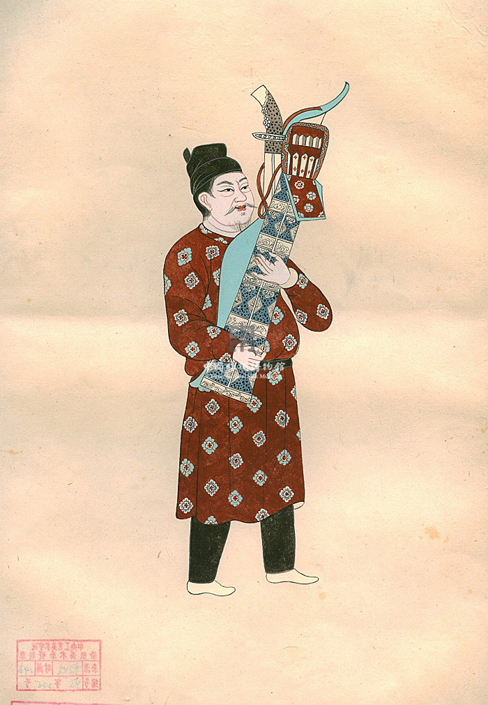 五代持弓囊侍從者服飾效果圖(常沙娜整理)