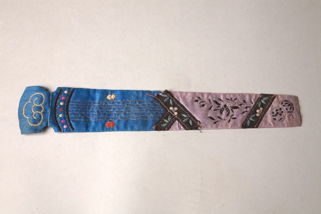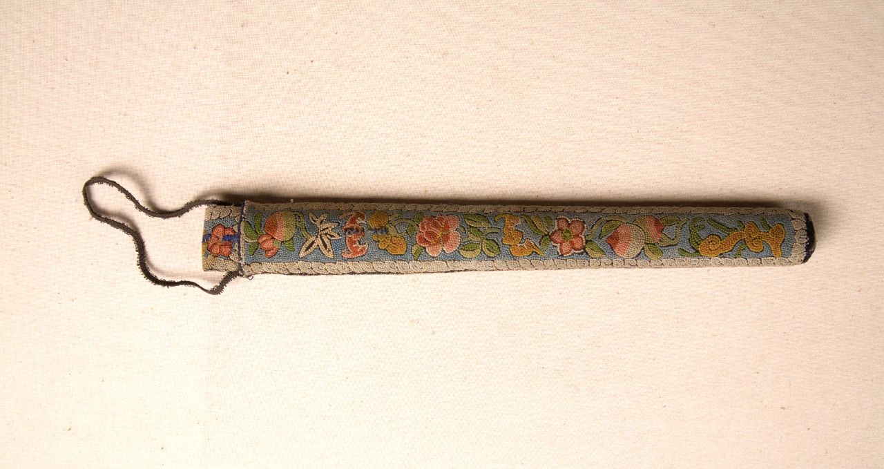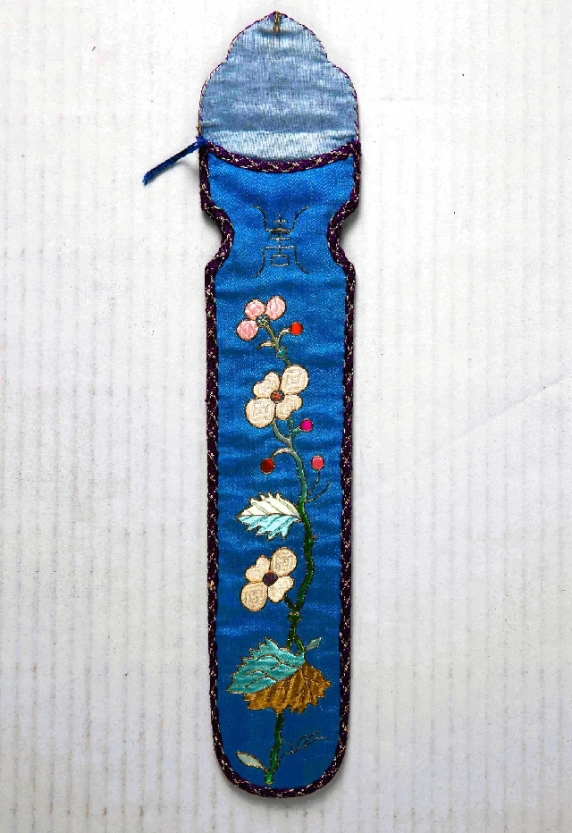 藍藕色緞地彩繡古琴形扇套,民國,中國絲綢博物館藏